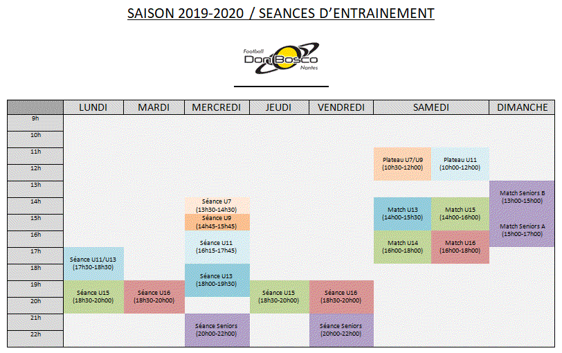 - Deux entraînements par semaine Lundi soir : 18h30-20h00